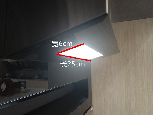 做過(guò)飯的消費者可能有這樣一個(gè)體驗,油煙機雖然都配備了照明燈,但由于距離遠或者因為造型的原因,一般都比較小,并沒(méi)有多大的照明效果。而名氣700X因為造型的大氣,留給了燈光較大的放置空間。經(jīng)測量,這款節能LED冷光矩形燈長(cháng)25cm,寬6cm。
